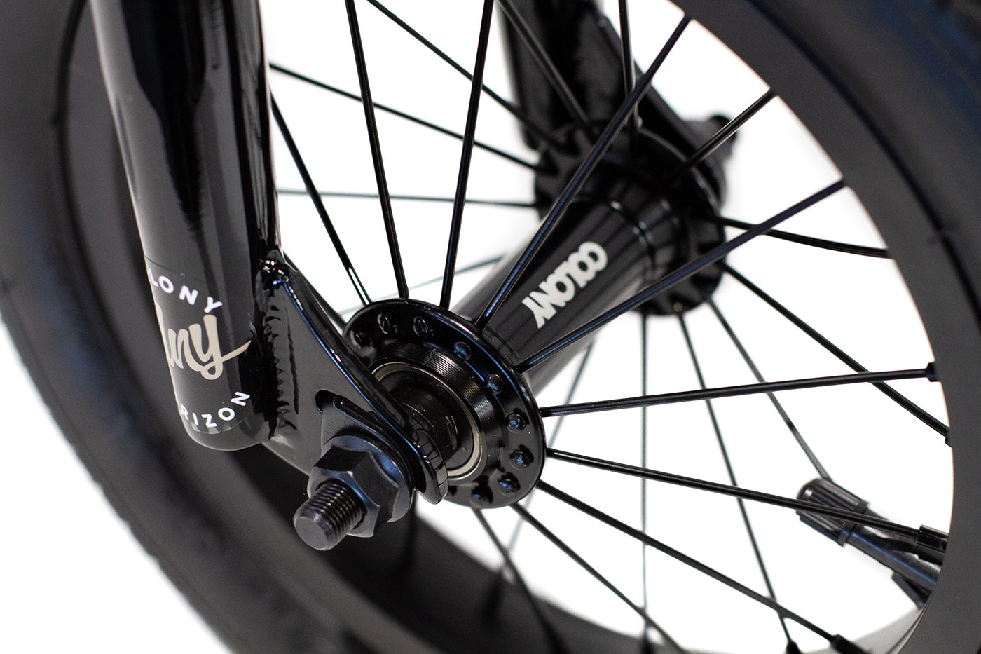 Front Hub: Colony Horizon Alloy, sealed bearing, 10mm axle.